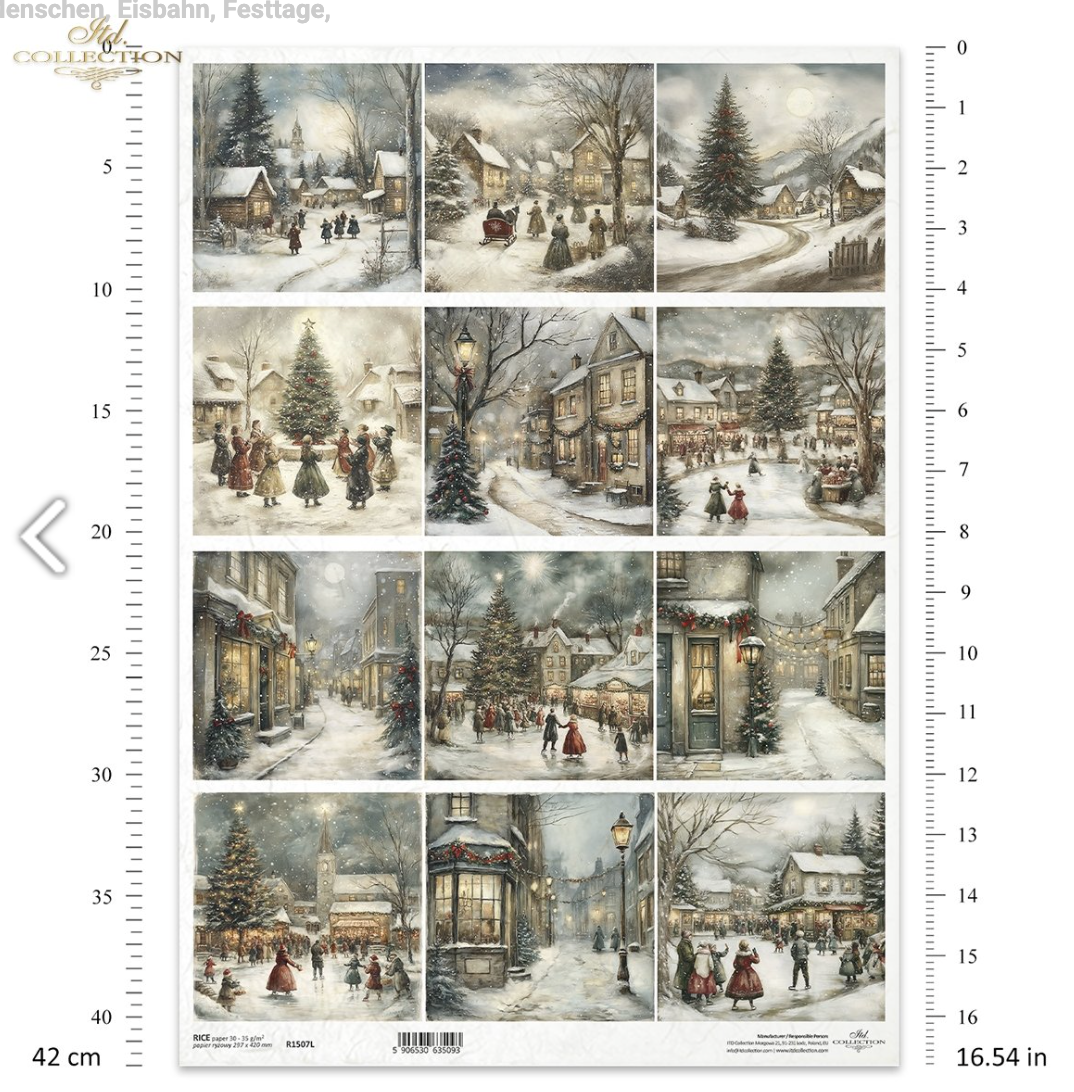 A3 ITD Large Yule Tide Village Decoupage Paper R1507L