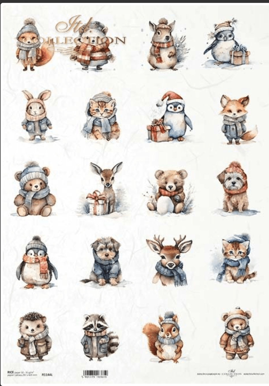 A3 ITD Little Winter Friends Multi Decoupage Paper R1144L