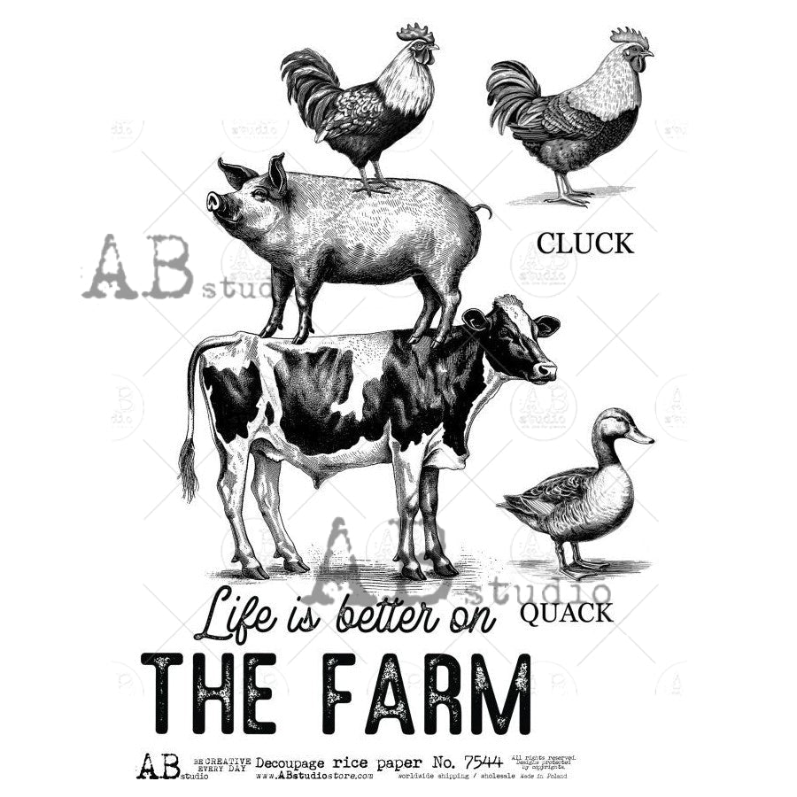 A4 Life Is Better on the Farm Signs Rice Paper AB Studios 7544