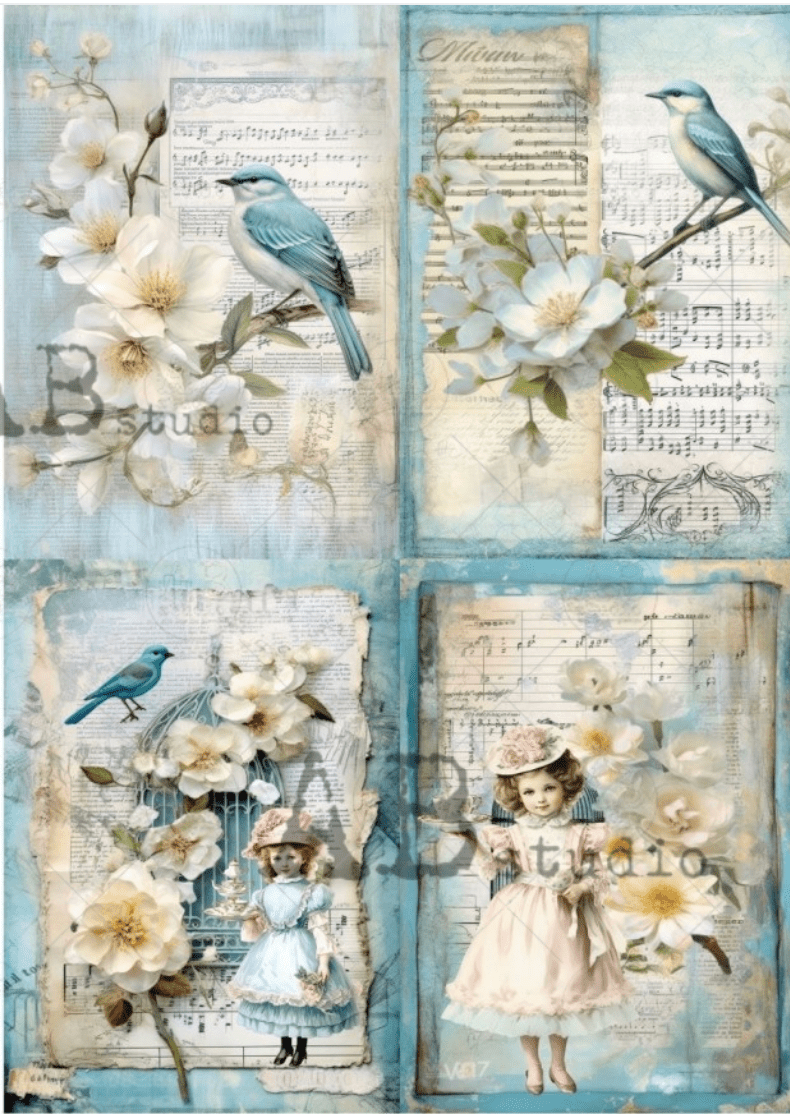 A4 Milky Valley Blue Bird Quad Rice Paper ID89