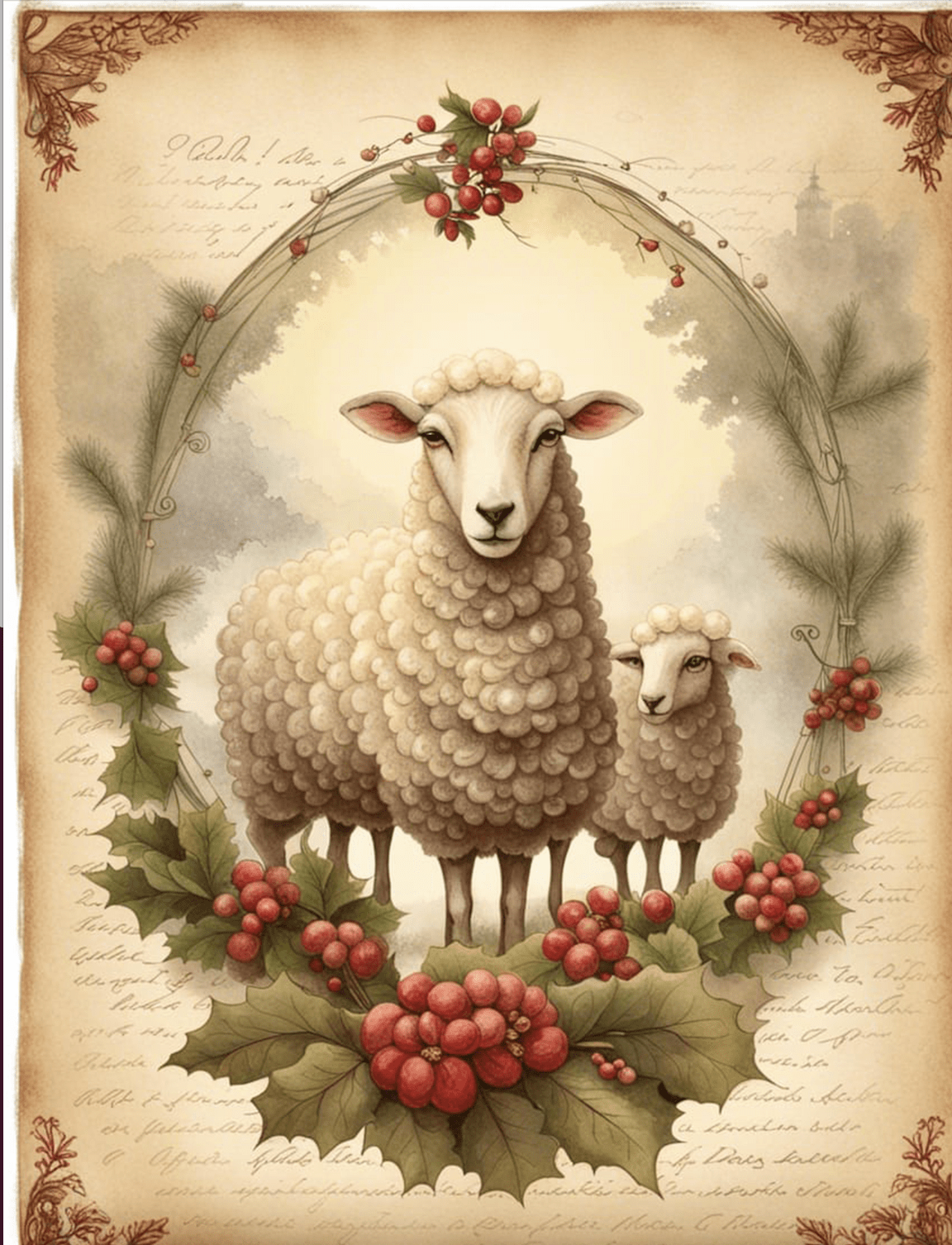 A4 Christmas Sheep Trio Rice Paper DC120