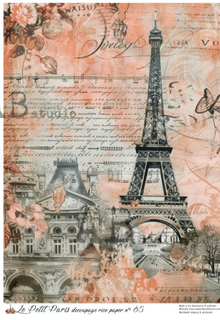A4 LPP Spring Eiffel Tower Collage Rice Paper Le Petit Paris 85