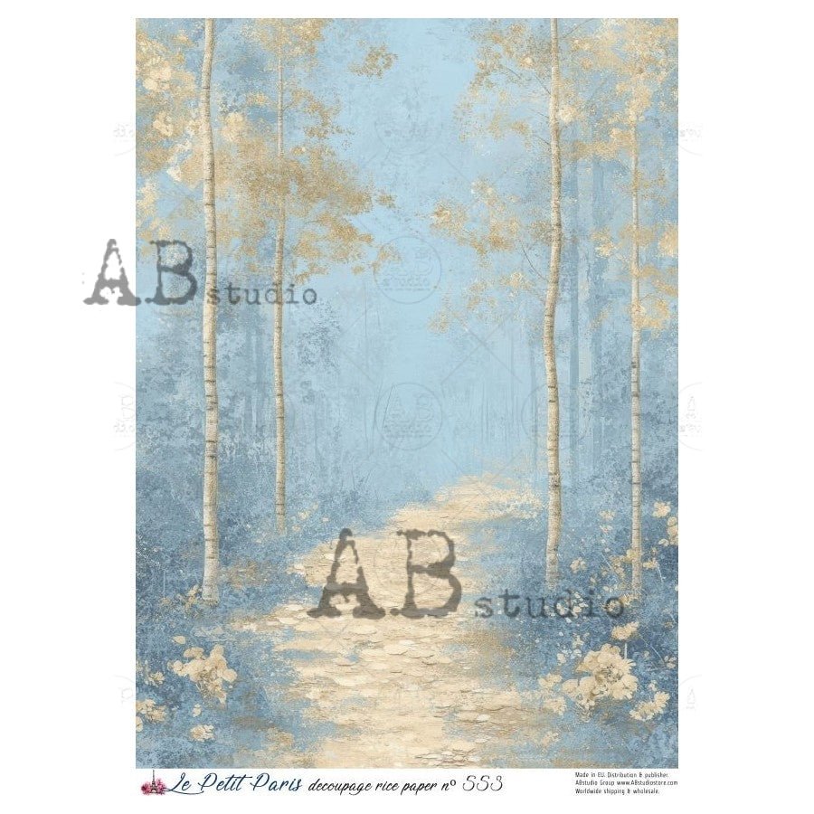 A4 Blue Birchwood Path Rice Paper Le Petit Paris 553