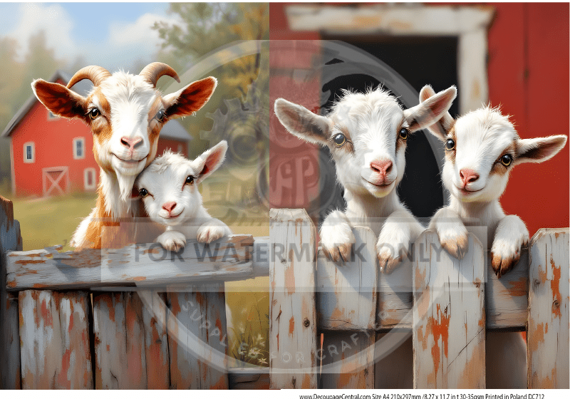 Two adorable goat duos peeking over the fence — perfect for farmhouse, nursery, and giftable crafts.