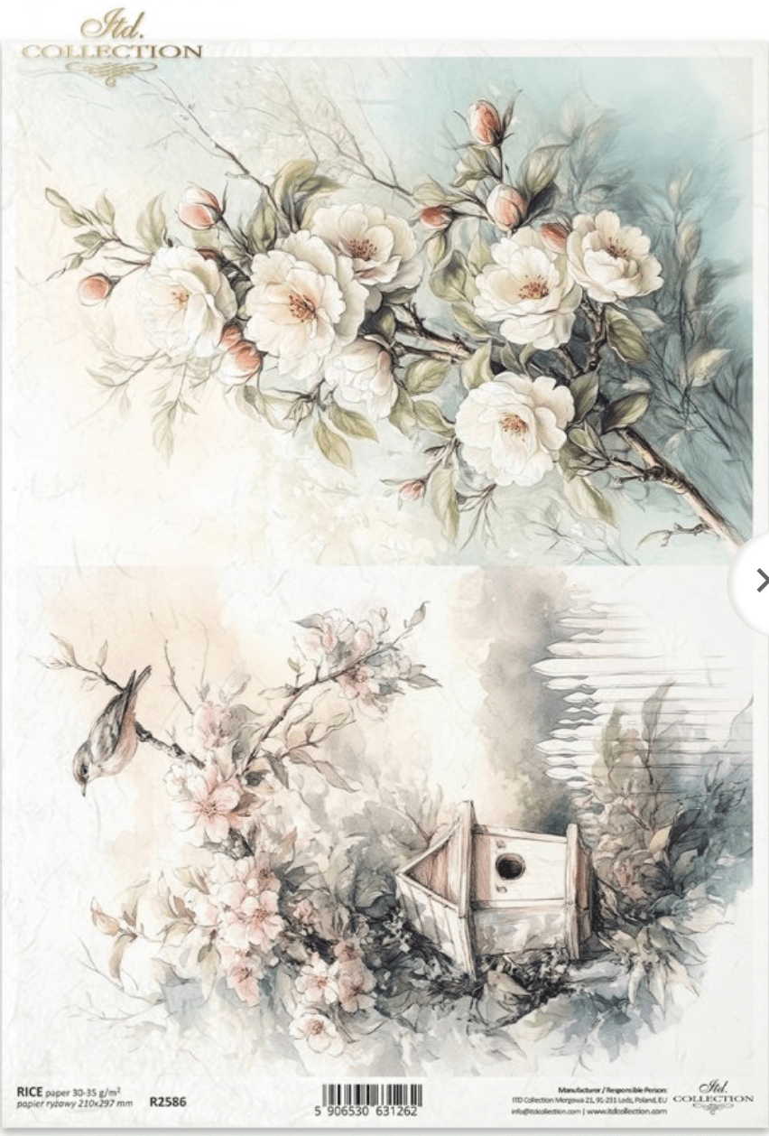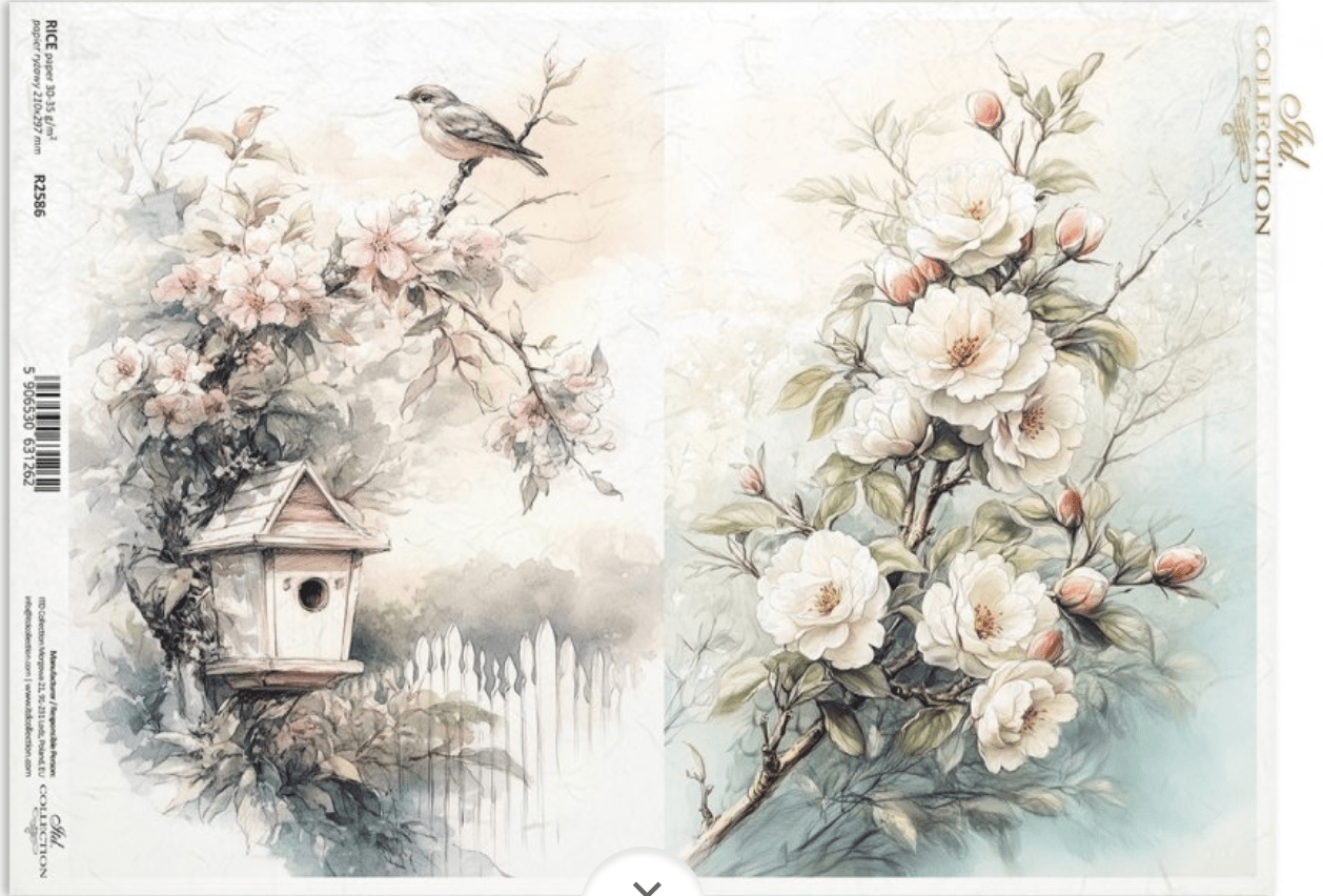 A4 Rustic Flower and Birdhouse Duo Decoupage Paper R2586