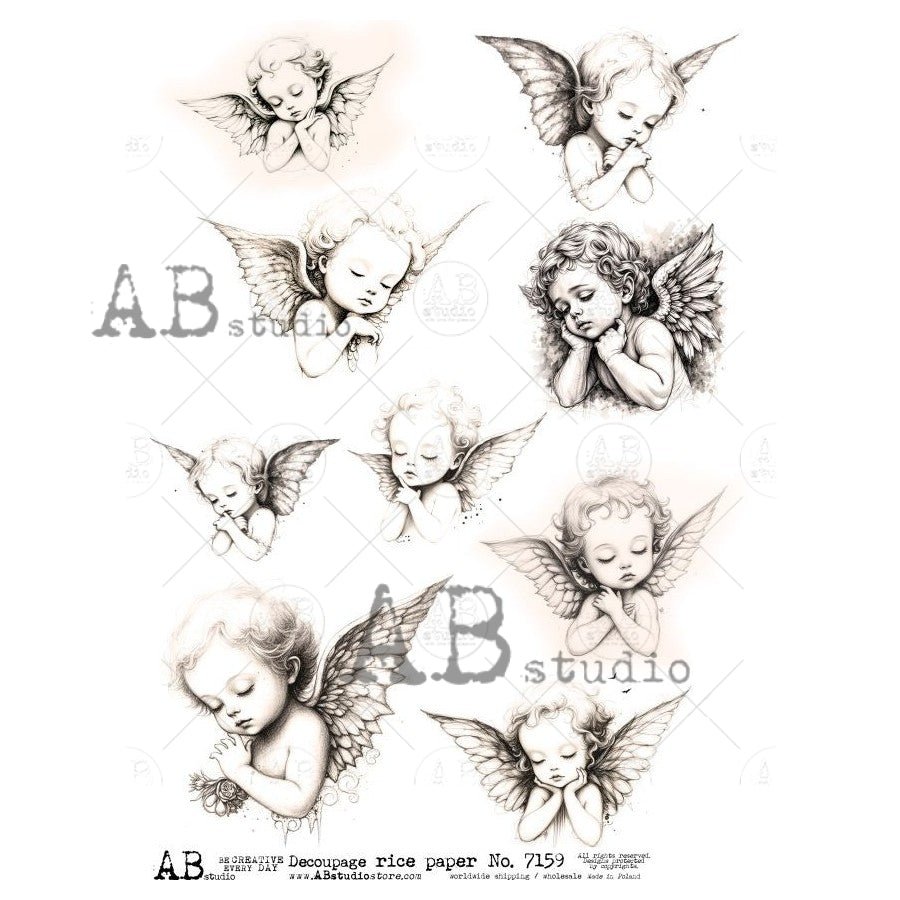 A4 Sepia Angels at Rest Multi Rice Paper for Decoupage AB Studios 7159