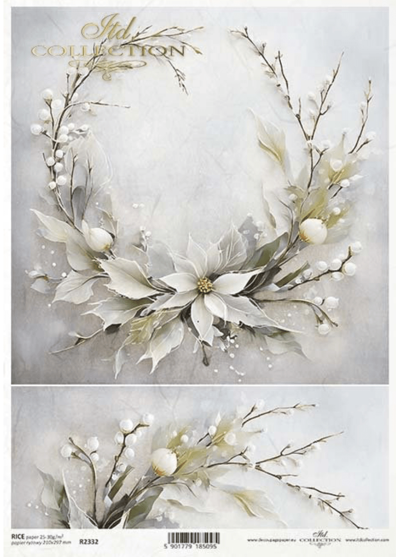 A4 White Winter Flower Wreath Rice Paper R2332