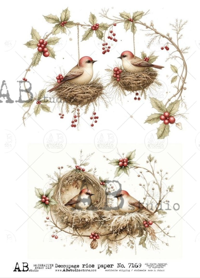 A4 Winter Nesting Birds AB Studios 7169