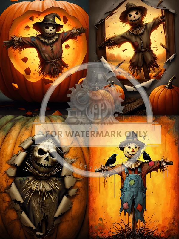 DIGITAL IMAGE: Halloween Scarecrow Quad Instant Download