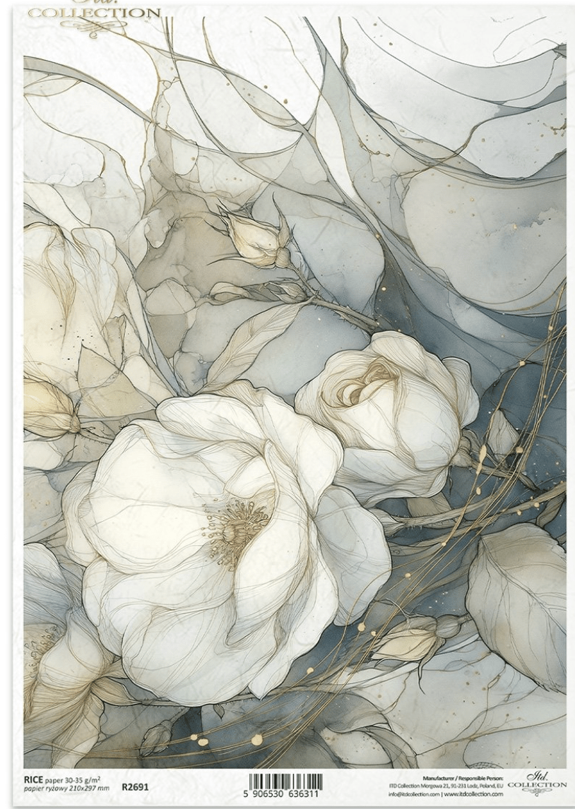 ITD A4 Blue Magnolia Reverie Rice Paper R2691